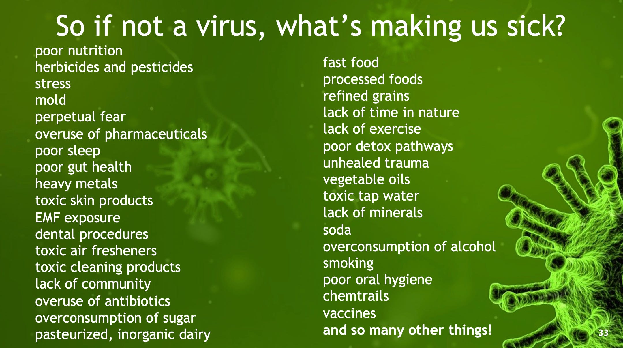 This is where the reductionist mindset that is subtly propagated by allopathy and germ-theory proponents is important to dissect. We are complex physical, spiritual, emotional, energetic, electrical, chemical, biological beings with gazillions of inputs and outputs unique to our own lives. I’d argue that disease symptoms likely arise due to several factors that are unique to the individual— sometimes unique to families, and sometimes unique to communities. What does Steve eat? What is Steve’s home environment like? What are his beliefs? How does he sleep? What pharmaceuticals does he take? What supplements? How are his stress levels? What toxins are present in his environment? We can speculate on this all day. This is for Steve, and anyone reading this that relates to the experience described by Steve, to contemplate.